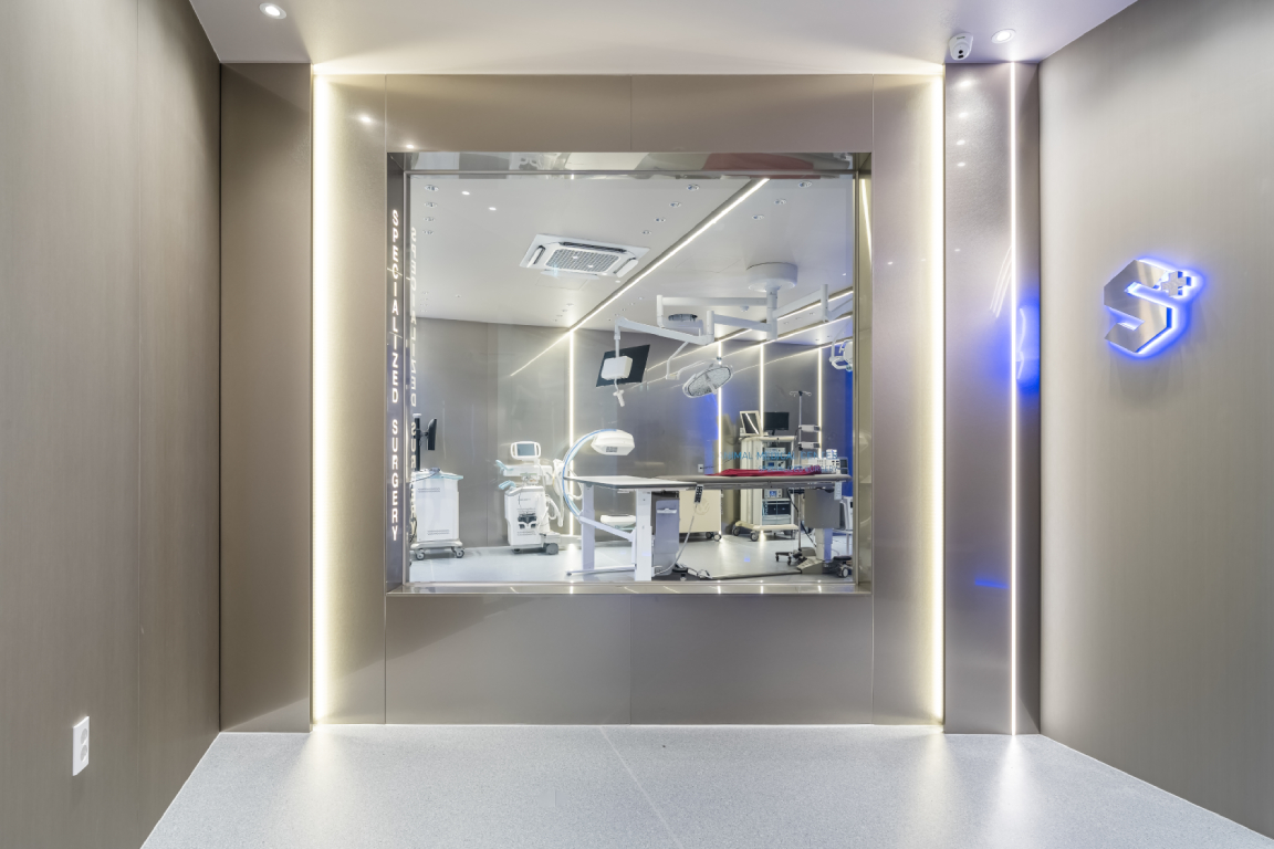 이 과정 중에 고성능 헤파필터가 세균과 미세먼지를 99.97% 제거하여 감염을 최소화하는 환경을 만듭니다. 이 외에도 에스수술실은 공조시스템, 무정전기 특수천정벽면 마감재, 멸균설비 등으로 수술 성공을 높일 수 있는 기본에 충실하고 있습니다.